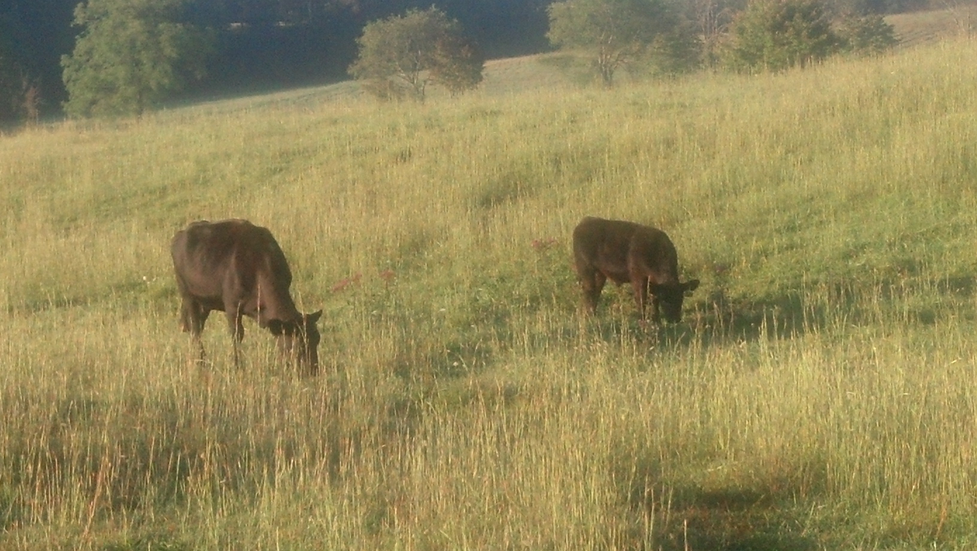 The cold front is here! I woke up, and my 15 degree sleeping bag was coming in handy. It was reportedly down in the 40s, so I did everything I could before getting out of my sleeping bag. It all went fairly smoothly, but I still started off hiking with my nanopuff jacket and gloves on. I warmed up as I climbed, so I took off my jacket and gloves. Suddenly, as I descended into the valley, it started to get colder. That's really unusual in my experience, but I'm no meteorologist. I popped out of the woods and into a pasture, where the sun was shining brilliantly. In the shadowy spots, it was deeply cold, but the sun made it just the right temperature. I avoided the dew on the grass by sticking to the middle of the trail. Just ahead, I saw a cow grazing smack dab in my path. I thought about petting it, but then I noticed the large cajones dangling between his legs. That was a bull. I realized that a lot of these cattle were bulls. I danced gingerly around them, of course getting a couple pictures, but not from close range. This brought me into the dew, which soaked my shoes and got my feet extra cold. After I left the pasture, there was more dew-walking, and I felt like I was walking in a freezing stream. I was so grateful to spot the Sunoco sign that indicated I had almost made it to the town of Atkins. I immediately headed to a restaurant called The Barn for breakfast, warming up with a cup of coffee. I didn't get enough to eat, so I doubled down on gas station food. That was also my resupply point. I've decided I would much rather avoid hitching when possible. It's nice to walk right up to a store. I sat outside and ate in the sun, then took off again.